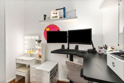 • Separate study, high ceilings, intercom security and air conditioning
